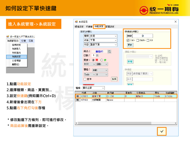 ※ 預設快速鍵,行情一到,一鍵交易!